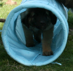 Kaum hatte "der Zwerg" seine Pfoten wieder auf dem Boden - da erstürmte er MEINEN Tunnel!!!